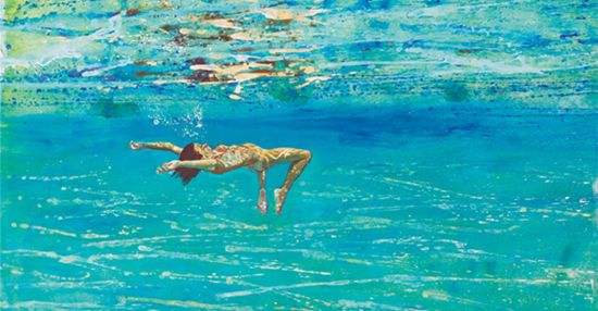 Painting by Maria Filopoulou, «UNDERWATER SWIMMER I» (OIL ON CANVAS) — 61x68cm. www.mariafilopoulou.com